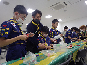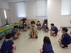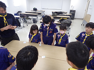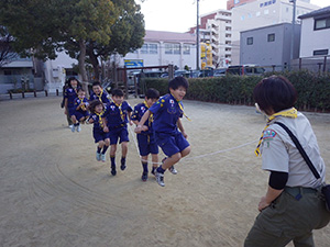 新年集会 カブ隊, 行事記録2023 1月 152024 2024年01月07日(日)小田南生涯学習プラザ 新年の初めは、手作り遊びや昔遊びで楽しみます。団委員の協力もいただき、2つの手作りおもちゃを作りました。その後、羽子板作りとかるたを楽しみ、午後は外で羽根つきと長縄跳び。ひたすら遊んだ1日でした。(M34)