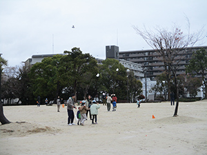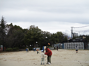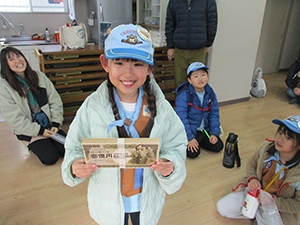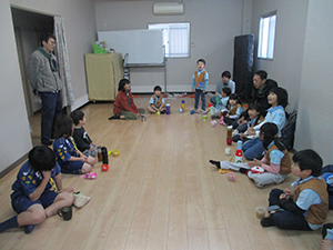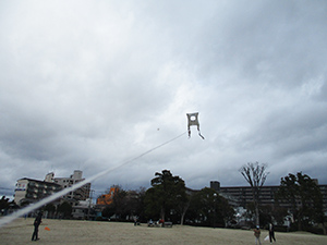 あいにくの雨、ですがちゃんと予想して三の坪会館を借りての凧つくり。グニャグニャ凧を作り、それぞれが絵を描いていきます。糸をつけ準備完了。幸い雨はやんでいましたが、風はもう一つ。それでもみんなは走り回り何とか揚げようとしていました。一時間ほどで午前の部は終了、昼食のおいしい豚汁を食べ、再度挑戦。今度は少し風がふいてくれ、隊長特製凧をはじめ、パパ凧も高く上がりました。会館に帰ってからは、ロールクイズの作成を楽しみ、B-P祭の出し物練習をし、賞金1億円のじゃんけんお年玉をし、今日の集会を終えました。次回耐寒ハイクには凧持参で、淀川河畔で高く揚げます。(K3)