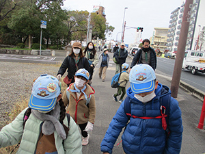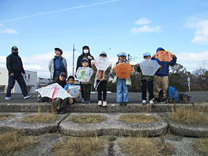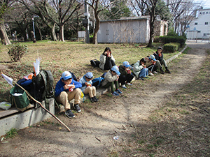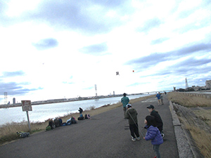 昨日の募金活動に続いての耐寒ハイク。インフルエンザの流行で、スカウト参加は半数、リーダー保護者の方が多いくらいです。それでも元気いっぱい大物公園を出発、途中遅刻のH副長をひろい、大阪西淀川区大野川緑陰歩道まで2号線を歩きました。ここで、途中参加のリーダー・スカウトと合流し、いよいよ本日のテーマ「10種類の樹木確認とスダジイ発見」をしながら淀川河畔まで歩くのを開始。スカウトとリーダーがバディを組み課題をこなしながら南下していきます。ここでもみんな難なく課題をやり遂げ、目的地到着。今日の第二の課題「凧あげ」です。大物公園はだめでも、ここは十分な川風がふき、35mのタコ糸限界まで凧あげができたスカウトもいました。昼食は暖かいカップ麺。おなかいっぱいになり、帰路につき、阪神福駅から43号線を、出来島、辰巳橋と歩き無事大物公園に帰着。予報の寒さにはなりませんでしたが、いいウオーキング日和でした。(K3)