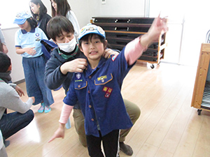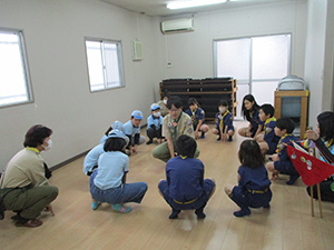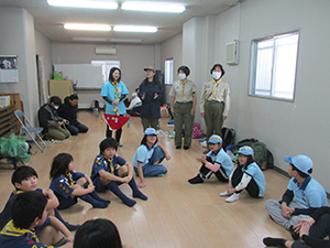 ビッグビーバー5人が、リスの道訓練でカブ隊集会に参加しました。朝からの雨模様で大物公園から三の坪会館に変更。カブ隊スカウトの各組に配属され、一緒にゲームやらソングをカブ隊集会を体験しました。