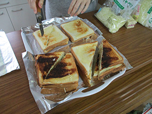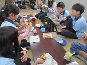 カブも張り切ってビーバーを指導し、新たな仲間への期待に胸膨らませました。昼食は、従来はマクドですが、経費節約でコロッケホットサンドとコーンスープ。みんなでおいしくいただきました。もちろんカブにもおすそ分け。そのあと、入隊説明会と制服合わせを行い、無事終了。(K3)
