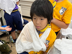 料理隊集会 カブ隊, 行事記録2024 6月 202024 2024年06月16日(日)小田北生涯学習プラザ カブ隊では年に数度、野外炊飯をやりますが、その練習として炊事の練習! ごはんを炊いておにぎりを作り、野菜を切って豚汁を作る王道メニュー。リーダーに教わりながら、おいしい料理が完成しました。これでカブ弁も自分で作れるね! 外はとても暑かったけど、1日室内での活動でした。(M34)