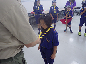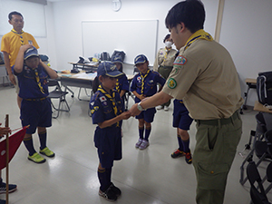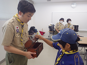 隊集会 カブ隊, 行事記録2024 6月 272024 2024年06月23日(日)小田南生涯学習プラザ まずは、1名のお友だちが入隊してくれたのでやくそくの式。カブ隊は11名になりました。先々週の昆虫館ハイクをもとに、クイズ大会を実施。みんなよく見学していたようで、いろんなクイズが出されました。総数20問のうち、18問正解したスカウトが優勝。すばらしい! 世界の国々についてのお話も聞いて、カブブックにサインも増えた1日でした。(M34)
