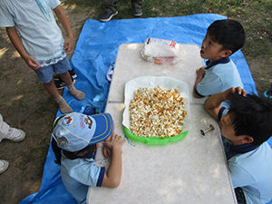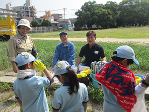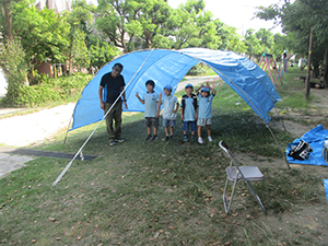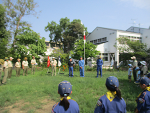 例年よりも早く団スカウトデー清掃奉仕が実施されました。9月に入っても少しも涼しくならず35度越え。尼崎市環境局の支援もいただいてBV隊は国道2号線沿いを徹底収拾。相変わらず植え込みの中にポイ捨てが多い。それとたばこの吸い殻、だれも拾わないのかかなり多い。各隊無事収拾を終え、環境局トラックに引き取ってもらい終了。BV隊は少人数で工作。れいパパとK副長に手伝ってもらい簡易雨除けテント制作。無事完成。唯一のギャングが本日仮入隊で、BVノートと制服を渡す。(K3)