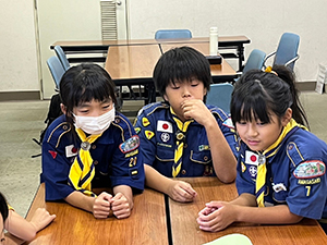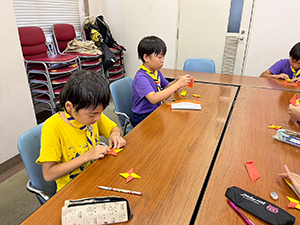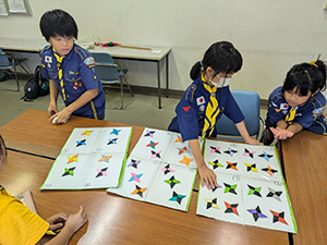 カブラリー準備集会 カブ隊, 行事記録2024 9月 252024 2024年09月22日(日)園田西生涯学習プラザ 雨の予報ですが、来週本番のカブラリーのため”雨天決行”です。幸いにも、カブラリー本番と同じ園田西生涯学習プラザの会場を確保しているので、カブラリーの準備をしっかり行うことができました。本番用の手裏剣も折り、準備万端! 目指すは優勝ですね!(M34)