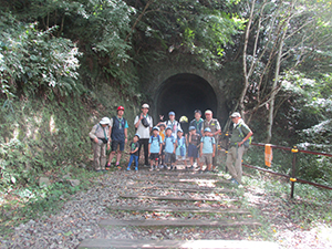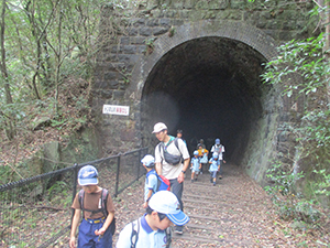 22日の雨で一日延期して隊ハイクを実行。久々の廃線ハイクです。今シーズン一番のカラッとした秋を感じるような気候でした。JR生瀬駅からのアプローチがより安全になり歩道が整備されました。又トイレもあり今までとは大違いです。廃線跡は変わりなく、トンネルは暗く、武庫川中流の岩壁は絶景を見せてくれます。モミジにはまだ早かったですが、難なくトンネルを抜け親水広場で昼食。少し楽すぎたので昼食後桜の園までの登山ハイクが応えました。そして、お決まりの足湯まで足を延ばし、予定より早く帰ってきました。雨プロやめての野外活動、やっぱり一番です。(K3)