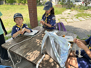 組集会 カブ隊, 行事記録2025 5月 122025 2025年05月11日(日)大物公園 良いお天気の大物公園で、次の集会に向けて準備の組集会です。はじめに、カブブックの計測とロープを履修。6月に予定されている、3団合同のピザづくり。何を載せるか? みんなで決定しました。いろんな案が出ていましたが意外と堅実。当日が楽しみです。18日の体験入隊に向けてコーナーの練習もして、当日が楽しみ! 天気がどうなるか気がかりですが、準備はバッチリ!(M34)