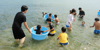 ビーバー隊のタライ船、櫂(かい)があれば一寸法師のようですね。
