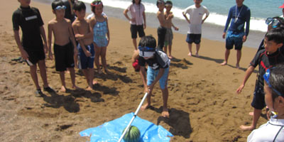 尼崎の方は雨、雷と大変でしたが、舎営地の白崎では良いお天気に恵まれ、プログラムも順調に進んでいったようです。海でのプログラムもビーチを貸し切りの状態のようですね。