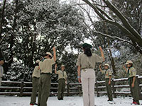 セブンサミット第6弾は近場の中山最高峰。先週の雨で延期したところが天気予報通り今季一番の寒波で雪。電車で川西池田に着くころには市街地も真っ白。予定を変更して、中山寺から登ることにしましたが、一面の銀世界。しかも登るにつれて粉雪が舞い散り、昨年の金剛山登山の真逆の銀世界でした。山頂での昼食もそこそこに下山を開始しましたが、足洗川沿いの下山ルートはまさにアイゼンが必要な位つるつるでしたが、ボーイはへっちゃらで、すいすい降りて行きました。来月の耐寒金剛山登山は今回に切り替え、不参加の前隊長に月の輪を引率してもらいたいと参加リーダー全員一致の意見でした。(K3)