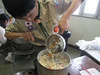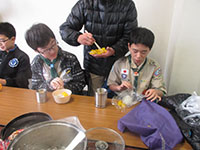 隊集会 ボーイ隊, 行事記録2016 2月 082017 2017年02月05日(日)スカウトハウス 今日も雨。今年に入って各隊行事はすべて雨です。スカウトハウスでの集会にし、B-P祭でのスタンツ練習を行い、昼食はご飯を炊き、野菜たっぷりのお味噌汁、漬け物という由緒正しい日本食。午後からは雨も上がり、大物公園でのコンパス実習を行いました。来週はいよいよ金剛山登山です。(K3)