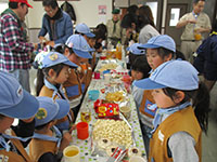 突き抜けるよう青い空、久々の日本晴れです。午前中は隊活動、午後からB-P祭ということで杭瀬団地会館に集合しました。ビーバー隊はプチハイクで常光寺から大物に至る旧河川跡をたどっての追跡ハイクを行いました。3組に分かれて、サインの矢印を捜しながら稲川公園に。そして旧大門川跡をたどり出発地に全員帰ってきました。午後からのB-P祭はボーイスカウト運動の始まりや、7団の歴史をスタンツやソングでたどりながら生誕を祝いました。フィナーレは7団65周年を祝っての乾杯とお菓子パーティー。そしてサプライズの7団構成員ほぼ全員を網羅した映像入り団歌のDVD映写。だんだん人数が減っていきますが充実したB-P祭でした。(K3)