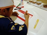 1年前の予約から待ちに待っていた、ダスキンミュージアムでのドーナツ体験ハイク! 朝の部の体験だったため、電車で急ぎ足で施設に到着。生地をくりぬいて作るドーナツ3つと、トッピングをほどこすオールドファッションを2つ作りました。箱も自分でデザインできて、おみやげもあり、揚げたても食べられて大満足。帰りは電車を使わず歩いて、カロリー消費しました。お掃除体験も併せて行ったので、家でのお手伝いもバッチリ?!(M34)