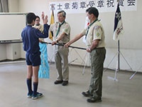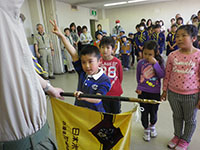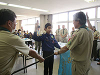 入隊上進式 ビーバー隊 4月 052017 2017年04月02日(日)小田地区会館 午前中の菊富士お祝い会、名残の隊集会を終え昼食後29年度入隊上進式を行いました。ビーバー隊へ3人、カブ隊へ4人、ボーイ隊へ2人、ベンチャー隊へ1人、ローバー隊へ1人それぞれ新入、上進していきました。団全体でも人数がだいぶスリム化していますが、70周年に向けて決意も新たに出発した一日でした。(K3)