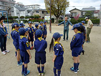 少しぐずつく空模様の中、1年間続いた65周年記念行事のクロージングが青少年センターにて実施されました。隊長は、朝から少しの間みんなの目の前から消えましたが…、ちゃんとセレモニーには出ていたんですよ。昼食後は集散体形の訓練。今年は皆全力で、後半少しばてちゃったかな? でも組長次長がちゃんと教えてくれているので頼もしいです。今年初の優秀組は1組でした。おめでとう!(M34)