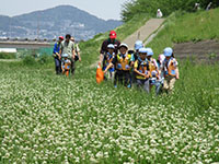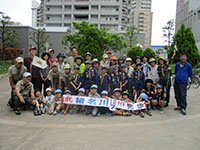 7アワートライアル ビーバー隊 5月 042017 2017年05月03日(水・祝)猪名川ステージ 恒例の7アワートライアル、今年は憲法記念日に川西池田、北伊丹を出発し、猪名川・神崎川沿いに尼崎まで帰ってくるという7マイル10マイルコース。JR尼崎駅に集合したのはBV、CS、BS、パパ・ママ、ギャング総勢39人。さわやかな五月晴れのもとそれぞれが途中リタイヤもなく、ゴールの潮江東大寺公園に帰ってきました。そしてリクエストドリンクをゲットし、渇ききったのどを十分に潤し今年度7アワートライアルを終えました。(K3)