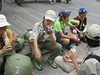 7アワートライアル ボーイ隊 5月 062017 2017年05月03日(水・祝)猪名川ステージ 自由参加のボーイ隊ですが、先日の2級ハイクに未参加スカウトのチャレンジも兼ねます。また、カブの引率も任されお兄ちゃんの役割も果たします。距離的にはこんなのへのかっぱのボーイですから、体力的には有り余り、途中の公園では遊びまくりました。そして予定より早く無事ゴールインし、ドリンクをゲットしました。(K3)