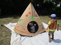 ビーバー隊集会 ビーバー隊, 行事記録2017 5月 152017 2017年05月14日(日)大物公園 久しぶりの大物公園での隊集会です。ただでさえ少なくなっているのに欠席者も多く一桁台の寂しい集会です。それでもあまななビーバーは前進あるのみですから今日も新しいゲームを取り入れて楽しい一日を過ごします。パパ、ママの協力も得て、昼食のスープ、体験入隊のTe-Pee作りと盛りだくさんのプログラムでさわやかな暑さの隊集会を終えました。(K3)