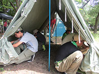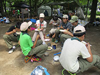 本格的なキャンプシーズン到来。再来週の予備キャンプに備えて、テント設営訓練です。それと夏季キャンプの保護者説明会で昼食を提供します。それと同じ場所で隊集会をするビーバー隊へ、マーキーとドームを設営提供します。ほぼ全員参加で、マーキー、ドーム、タープ、そして家形テント、ドーム型テントと設営、撤収を訓練しました。その間上班は黙々と昼食のちらし寿司つくり。おいしく頂けましたよ。午後からはビーバーの水鉄砲に参戦ずぶ濡れになりました。(K3)