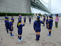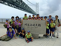 ハイキング カブ隊, 行事記録2017 7月 252017 2017年07月23日(日)明石海峡大橋 カブ隊は、夏のハイキングで明石海峡大橋へ。舞子駅で下車し、橋の科学館と舞子海上プロムナードの見学に行きました。少し曇っていましたが、こちらから淡路島までよく見えます。少し移動し、五色塚古墳から見る明石海峡大橋も楽しみました。良い景色でしたね。海風はあったけど、とても暑い一日でした。(M34)