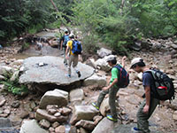 涼風隊ハイク ボーイ隊, 行事記録2017 8月 022017 2017年07月30日(日)船坂谷 暑くて重くてつらいばかりがボーイ隊活動ではありません。今回のハイクは洛北貴船ばりの涼を求めて六甲船坂谷へ向かいました。町中は猛暑でしたが、船坂谷の最深部の滝は別世界。水は冷たく、水泳気分というより滝行という感じでした。夏季キャンプは同じように比良山系での沢登りがあるのでいい訓練になりました。夏とはいえお昼の温かい味噌汁がとてもおいしかったです。(K3)