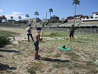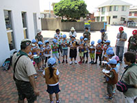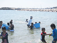 8月18〜19日、明石市立少年自然の家での夏期舎営を行いました。現在所属している全スカウト、ギャング、リーダーが参加し、補助者、保護者それに翌日参加保護者を加えて37名の大所帯です。集合時、明け方の雨もやみ、それからはまさに夏空一色の二日間でした。江井ヶ島海水浴場のたらい船、スイカ割り、みんなで入ったお風呂、夜のゲーム大会と充実したプログラムを楽しみました。二日目も土鈴作りと昼食のぶっかけうどんと自然の家での王道コースをこなし、退所しました。今回はプラネタリウムをやめ、明石市立文化博物館での見学、そこでオバケ屋敷を体験し、明石城の乾櫓見学と少し変化をつけました。定番のアイスもしっかり食べ、ビーバーの暑い夏は終わりました。(K3)