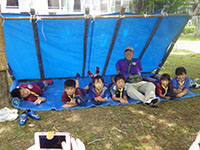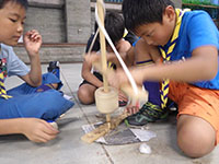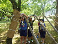20日…いよいよ最後は、たんばの森で『小屋づくり』自分たちで一から、丸太で小屋を作るのって難しい…。結び方を教えてもらいながら悪戦苦闘でなんとか作り、お弁当もそこで食べることができました。3日間の優秀組は1組でした。時間通り行動し、チームワークもバッチリ。でも、2組3組も組長を先頭によく頑張っていたね。今年後半の活動も楽しみになる3日間になりました。(M34)