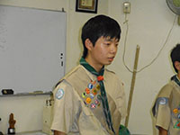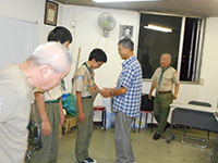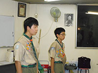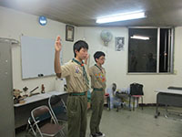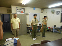 進級面接 ボーイ隊, 行事記録2017 9月 012017 2017年08月30日(水)スカウトハウス 菊スカウト、二級スカウトの団面接が行われました。菊章は上級班長のA君、二級は佃組の数少ない生き残り、KE君です。K君は同期が6月に一足早く進級面接を受けましたが、クラブ活動の関係で今日になりました。両立が難しい中、やる気十分に団委員の励ましに対応していました。菊面接のA君はボーイ隊のトップスカウトとしてみんなを引っ張っていってます。9月2日に地区面接を受け菊スカウト誕生となります。(K3)