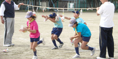 しかスカウトは都市交歓で鳥取に行く間に残りのスカウトは、いつも施設を使わせていただいている清和小学校の開放の運動会に参加です。昼からはビーバー隊に合流して懇親をはかります。