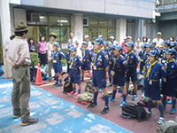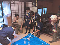 待ちに待った都市交歓、が…出発前から台風の予報!? 今回は本当に台風に翻弄される都市交歓です。でも、スカウトたちは元気いっぱい。『しあわせはこぼう』のテーマで、但馬のスカウトとの交流から始まります。雨という事で狭い宿舎の中で行いましたが、各チーム白熱した戦いを繰り広げ5組が優勝を勝ち取りました。夜のキャンプファイヤーも、2階で室内形式でしたが、スタンツがよく見えてかえって良かったかも? 2日目は残念ながら予定を切り上げ、コウノトリの郷公園のみとなりましたが、私たちのためにコウノトリのことを説明してくださり、ちょうど飛び立つところも目の前で見ることができました。予定外が多い都市交歓だったけど、スカウトたちの持ち前の元気とポテンシャルで、楽しい、思い出に残る都市交歓になったと思います。今年は、7団からもスカウト9名、リーダー3名の大所帯で参加し、地区での存在感もあったかな。(M34)