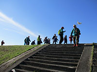 朝方はちょっぴり寒かったけれど、歩いてるうちのだんだん暖かくなっていって、JR猪名寺から田能遺跡資料館に着く頃は快晴のぽかぽか陽気でした。4年ぶりのこのコースですが、参加スカウトが12人と少なく、リーダー保護者合わせても全部で19人とこじんまりしたハイクとなりました。それだけに歩くスピードも速く、田能遺跡には1時間弱で到着。前回勉強した食べれるドングリ「マテバシイ」を採集したり、資料館で学芸員の方の説明を受けたりして、かしこくなって原田公園に移動。小さな遊具があるだけですが、滑走路横の絶好の場所で遊び、そして昼食。ここでは前回採集した、「スダジイ」と「マテバシイ」を煎って試食、弥生人の気持ちに浸りました。そして、空港内スカイパークに移動、ここでも遊具で思い切り遊び、帰途についたのです。(K3)
