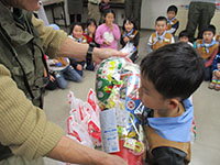 クリスマス集会 ビーバー隊, 行事記録2017 12月 252017 2017年12月23日(土・祝)小田地区会館 昼間のユニセフ募金に続いて、楽しい夜の隊集会。集まったのはビーバー19、ギャング兄弟11、カビボビ8、保護者21、リーダー6の65名で小田地区会館の会議室が満杯状態です。早速、準備のコーンスープとウインナードッグ、リンゴ、ポップコーンを頂いて、ゲームをしました。そしてキャンディ交換、スペッシャルプレゼントと短時間のうちに行い、今年の最後の集会を終えました。サンタプレゼントはT一家が独占さすが5人参加の実力です。(K3)