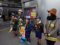ハンドインハンド カブ隊, 行事記録2017 12月 272017 2017年12月23日(土・祝)宮前公園 なんと、この日にやくそくの式を行い1名入隊。新しい仲間も一緒に募金活動です。今日の優秀組は全員が、元気に声を出していたか?を見ることにしました。みんな、寒い中よく頑張ってくれましたが結果は3組。ただ、一人うさぎさんながら声をからしそうな位がんばって募金活動をしてくれていたスカウトには、閉会セレモニーでスカウトサインをやってもらいました。みんな、ありがとう!(M34)