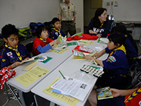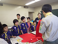 組集会・隊集会 カブ隊, 行事記録2018 4月 212018 2018年04月15日(日)小田地区会館 あいにくの雨降りのなか、小田地区会館に全員が集合しました。今日は年度初め組集会なので、恒例で上進スカウトのシーターポン作り、全員で組ごとにTシャツを作りました。今年のTシャツは炎のイメージカラーで、各組とリーダーは違う色として、胸には名入りのイラストをプリントしています。その後、全員でカブ隊のソング練習やゲームをして、早めの12時には解散しました。(Massa)