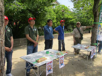 カラっとした暑さの中、塚口椀田公園で尼崎地区ビーバー祭りが開かれました。開会式時点でスカウト、一般参加が160名を超しているような状況で、用意した缶バッジが足らなくなり、リーダー、保護者分は急遽回収となりました。「尼ぴょっんを救え」のテーマで各隊が準備した9つのコーナーを回り、昼食後全体ゲームで締めくくりましたが、途中参加も多く、全参加者は300人近い大盛況だったのではないでしょうか。これが人数増加につながればいいのですが。(K3)