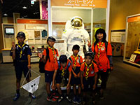 前の日までの大雨続きで、計画していた箕面の滝は危険が伴うため大阪市立科学館に変更。ちょうどキャンプ前だし、プラネタリウムで星空も勉強できるし良かったかも? 着いたらまずは各組で課題に取り組みながら見学スタート。問題のうちいくつかはリーダーが見学しながら考えるのでリーダーも真剣に見学。11時から、プラネタリウムで星の勉強もバッチリ。キャンプの時は晴れて役にたてばいいな〜。昼食は、靱公園に移って食べました。終わりかけですが、バラも咲いており、カブブックの観察のための課題にも取り組みました。川遊びは出来なかったけれど、浅い水辺が公園内にあり、足をひたす程度ですが遊んで帰りました。スカウト達はちょっと物足りなかったかな? 課題のビンゴはもちろん、整列も早かった3組が優秀組に。次は舎営、の前にジャンボリーの壮行会があります。みんなで賑やかに送り出しましょうね。(M34)