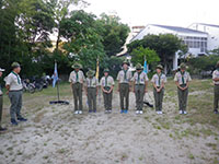 17NSJ壮行会 ボーイ隊, 行事記録2018 7月 242018 2018年07月21日(土)大物公園 開始が1時間遅れるというハプニングがありましたが、第17回日本スカウトジャンボリーの団主催壮行会が夕刻大物公園で実施されました。参加スカウトリーダーの決意表明、励ましの言葉、乾杯と少人数ながらあたたかい雰囲気の中に無事終えました。石川県珠洲市で8月4日より開催されます。7団スカウトのみなさん楽しんで来てください。(K3)