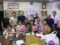 7月21日、NSJ壮行会終了後、スカウトハウスに場所を移して、県連特別有功章・後藤さん、有功章・相場さん、松井さんの受賞お祝い会を行いました。長年にわたりスカウト活動に従事してきたという功労による物です。連日の猛暑で4Fスカウトハウスはサウナ状態でしたが、受賞お三方の再決意表明や、参加者のお祝いスピーチで暑さも吹き飛ばす勢いでした。改めて、後藤さん、相場さん、松井さんおめでとうございます。(K3)