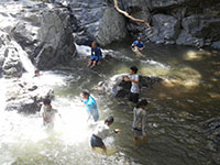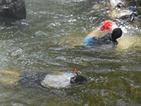 水泳訓練 ボーイ隊, 行事記録2018 7月 272018 2018年07月22日(日)摂津峡 第17NSJが迫ってくる中、ボーイ隊の水泳訓練が摂津峡で行われました。今回はシュノーケリングと救難訓練です。先般の大雨で水量は申し分ありません。冷たい山水で訓練を楽しみながら一時の涼を味わいました。(K3)