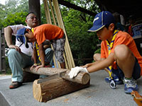 1日目のチャレンジはまず、飯盒炊爨。カレー、うまくできたね。ご飯はベンチャースカウトにも手伝ってもらい、今回も上出来。夜の星座観察は、雲が多くてちょっと残念。
