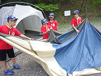 カブ隊の夏舎営は、例年よりちょっと早く7月に行われました。前回台風の影響を受けた荒神山へ、3年ぶりにリベンジ! あれ? また台風?? 2日目のメイン、リバーボートができることを祈って出発。