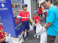天候が何とも言えない中、奉仕ずくめのスカウトデーです。今回は台風の影響で、町はもちろんホームの大物公園もたくさんの木が倒れています。カブ隊は自然学校と重なったことも有り少ない人数でしたが、清掃を始めるとみんな熱心に集めてくれ、デンリーダーの自転車いっぱいに持って帰ってきてくれました。公園の中を清掃してくれる組、市の職員さんに大きな声であいさつしてくれる組、時間いっぱい最後まで清掃してくれる組、みんなありがとうございます。午後は募金活動。今回は杭瀬方面で行いました。帰着後はジャンボリー報告会で、カブからも質問が。次回100周年の東京大会にぜひ参加してください。(M34)