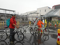 台風25号の影響が心配される中10/6〜8ビワイチサイクリングキャンプが実施されました。10/6朝集合時から雨模様。JR安土駅のレンタサイクル店を出発する際もカッパ着用です。彦根城につく頃には晴れ間が見えます。ひこにゃんと記念写真を撮った後、今日の野営地の長浜を目指します。途中豪雨に見舞われますがテントを設営後、夕食、ソング練習をして就寝。本日の走行距離37km。