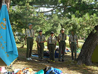 10/7後発組と合流後9:50豊公園出発。今日の野営地の北小松を目指します。昨日とは打って変わって晴天の中、どんどん距離を稼いでいきます。琵琶湖最北端の道の駅で木之本名物つるやパンのサラダパンとサンドウィッチをほおばり午後のスタートです。途中桜の名所海津大崎で休憩、今日の中間地点です。16:30北小松着早速お風呂セットを持って隊長の車で天然温泉比良とぴあへ。今日の疲れをいやした後野営地に帰ると既にテントとタープが設営されています。夕食のうどん鍋もほぼ出来上がっているので楽々と就寝。本日の走行距離80km。