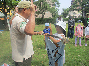 今日はみんなが楽しみにしている夏舎営の準備です。前半は、まずしおりを配布してもらって行き先などの説明です。今回のテーマはきらめき・ピチピチ〜海の不思議を解き明かせ~です。なんかワクワクするテーマですね。海の舎営も久しぶり。次は事前に準備した持ち物の確認です。今日は忘れても当日忘れなければ大丈夫だよ。しっかり確認して忘れないようにね。あと舎営では包丁も使いますので扱い方の説明と鉛筆削りでカッターの使い方の練習をしました。みんなぎこちなくてヒヤヒヤしましたが、なんとかできました。後半は、保護者説明会があり隊長とDLはそちらに参加。残された副長とスカウトたちでスタンツの準備です。内容は秘密なので当日が楽しみですね。最後にソングの練習をして終了。当日まで体調を崩さず元気で全員参加できますように。(yukko)
