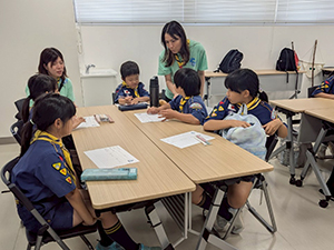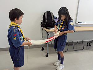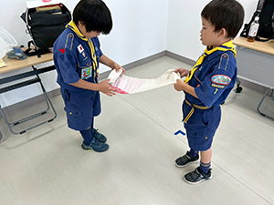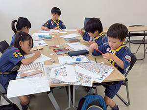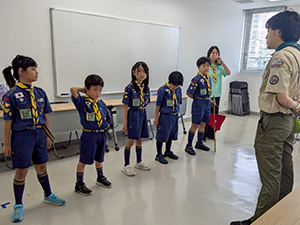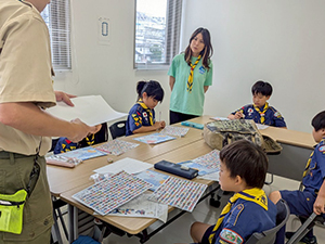 20団との合同で隊集会。7月のハイクに備えて、世界のことを学びます。世界スカウトジャンボリーの開催地を学習したり、国旗かるたで楽しく学んだあとは、保護者の方のお手伝いをいただき【英会話】の練習をしました。これで、次の大阪城ハイクで外国人の方に話しかけてみよう! その後は公園で外遊び、本日はおやつも海外のおいしいおやつです。(M34)