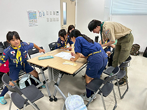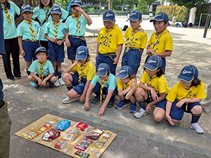 「失われた森の宝物をさがせ」のテーマで2025年地区ビーバー祭が近松公園で開催されました。地区所属各隊ビーバーと一般参加の子供たち約100人が8つのコーナーに挑戦し、最後に森の宝物をゲットしました。前回団体験から引き続き7団地域からも11名が参加し、また違った活動を体験しました。入隊につながるプログラムもいよいよ御前浜ハイク、水鉄砲、住吉川ハイクと続きます。オペレーション・オライオンは達成できるのか? 正念場です。(K3)